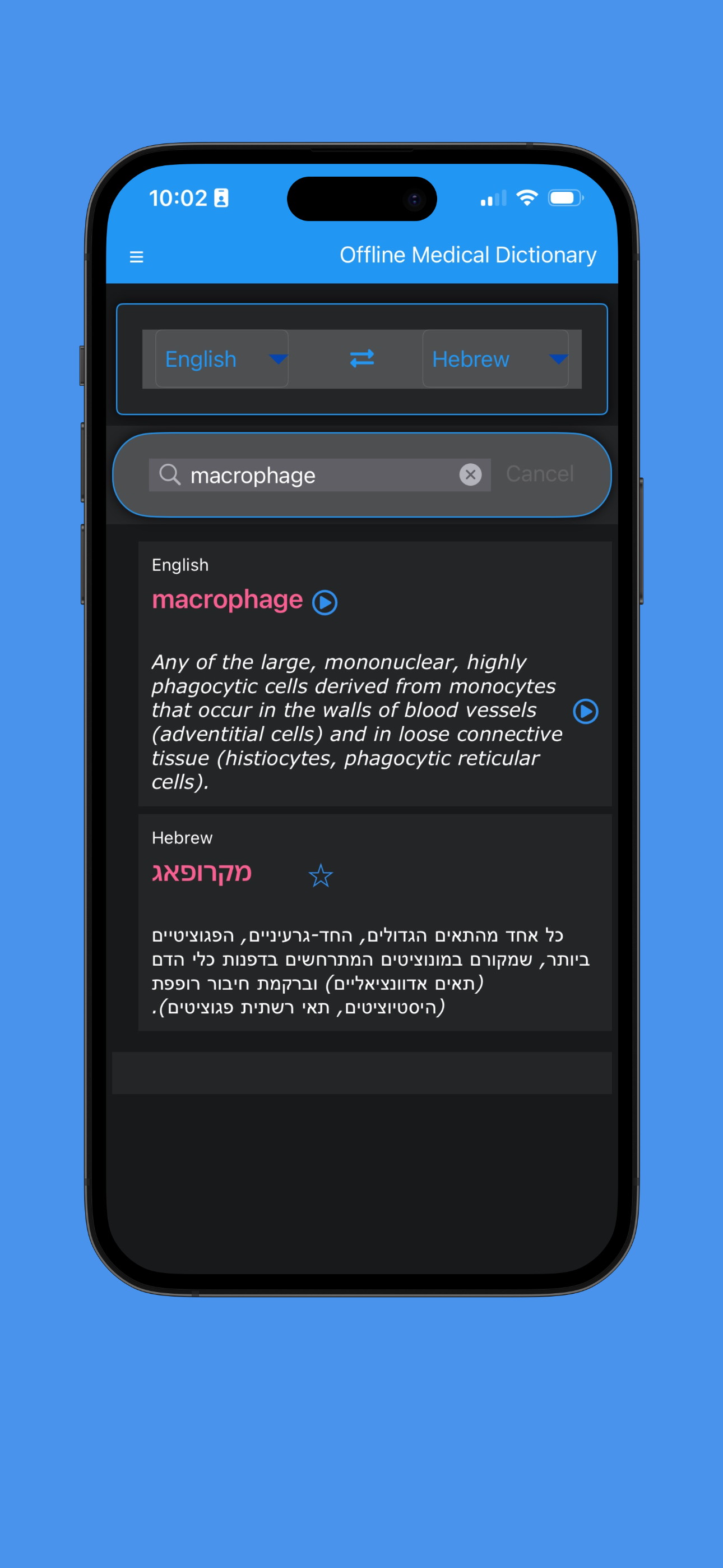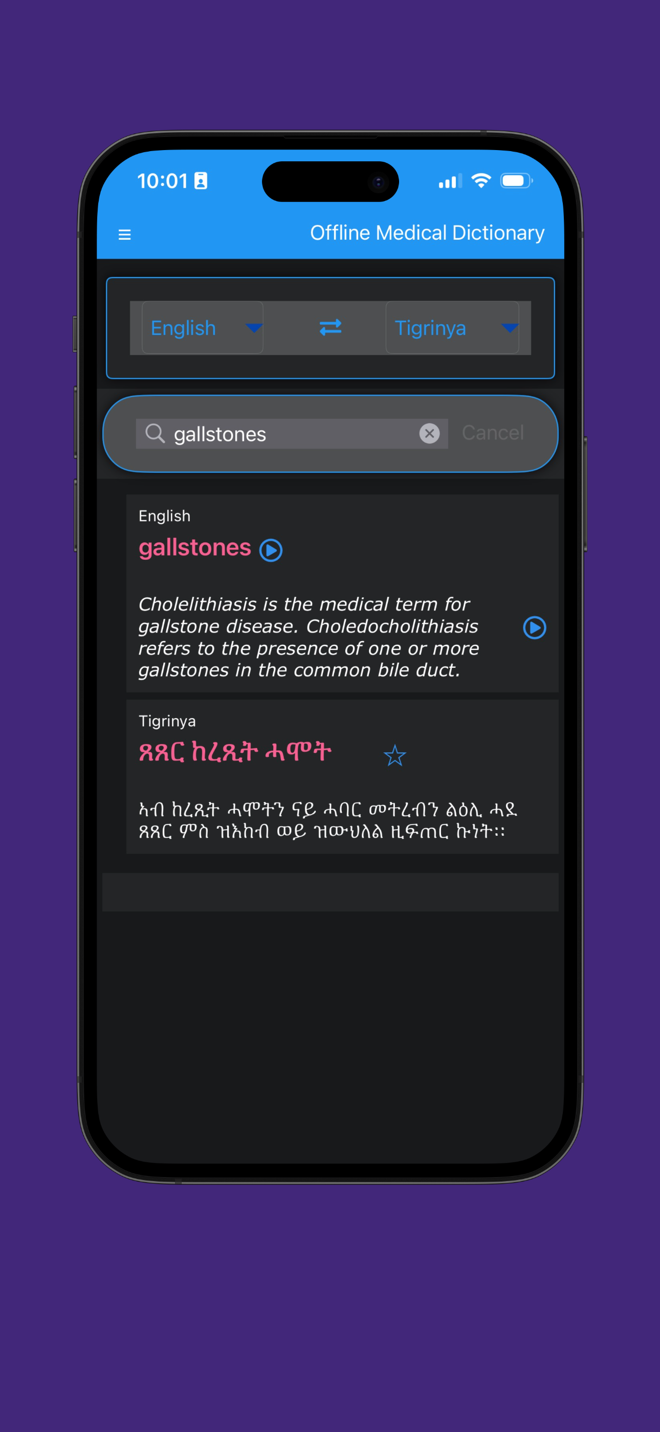 This medical dictionary app gives you all the information on 10 languages
